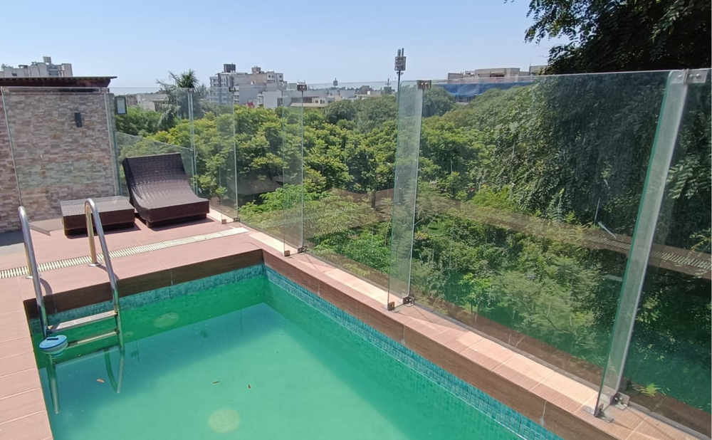 - Gran terraza con piscina y área de parrilla